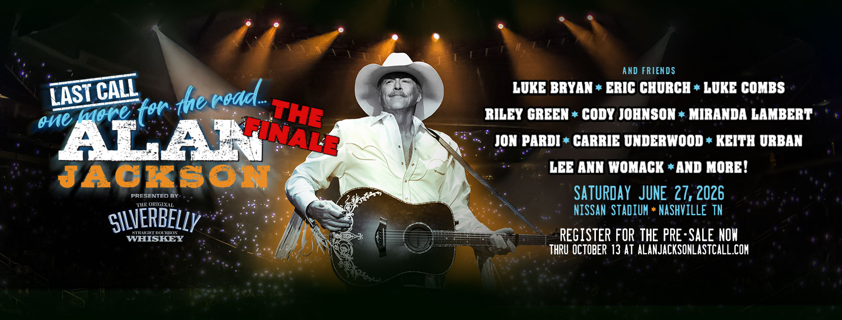 El ultimo concierto de Alan Jackson se llevará a cabo en la ciudad de Nashville Tennesee en el Nissan Stadium el dia 27 de Junio del 2026 y contará con la presencia de varias estrellas amigos de Alan como Luke Bryan, Eric Church, Luke Combs, Jon Pardi, Miranda Lambert, Riley Green, Cody Johnson, Jon Pardi, Carrie Underwood, Keith Urban y LeeAnn Womack, ademas de otros artistas que promto se anunciaran.